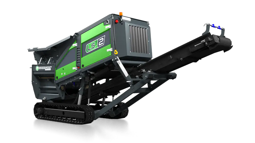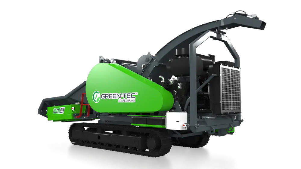 Mobilne rozdrabniacze do biomasy, odpadów drzewnych i karp korzeniowych. Wyposażone w system magnesu nadtaśmowego i hydrauliczny system wymiany sit.