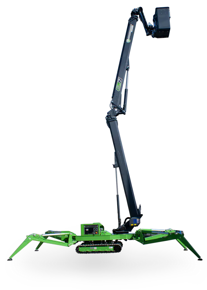 Seria podnośników koszowych Green-Tec SL5, SL6 i SL7 to nowoczesne, gąsienicowe zwyżki arborystyczne (tzw. spider lift), które zapewniają bezpieczny i łatwy dostęp do trudno dostępnych miejsc podczas prac na wysokości. Idealnie sprawdzają się w pielęgnacji drzew, utrzymaniu zieleni miejskiej, pracach budowlanych czy przy konserwacji infrastruktury.